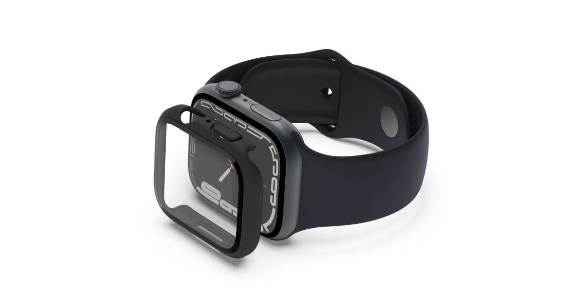 Belkin SCREENFORCE TemperedCurve 2-w-1 Treated Screen Protector + Bumper dla Apple Watch Series 7 - czarny opis