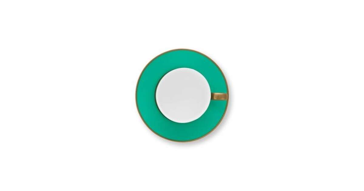 Kubek do espresso ze spodkiem, Pip Studio, 220 ml, kolekcja Pip Chique, Złoto-Zielony