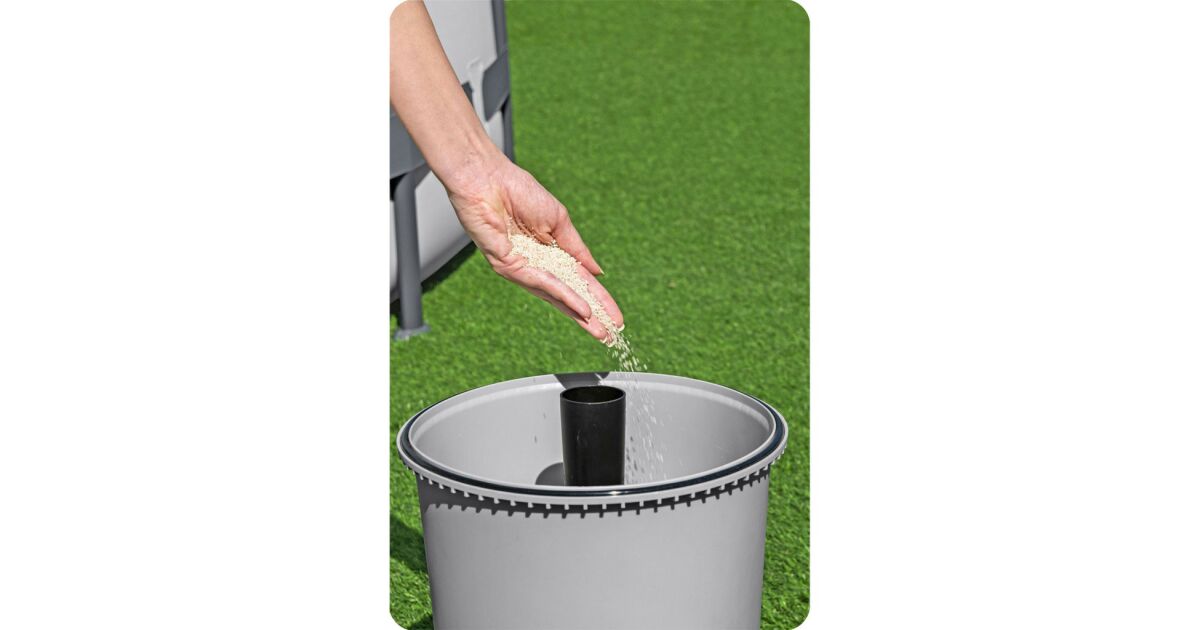 Działanie wymaga wkładu - piasku kwarcowego (piasek kwarcowy #20 0,45-0,85 mm około 8,5 kg) lub wysokowydajnych kulek filtracyjnych Polysphere™ o wadze około 240 g.
