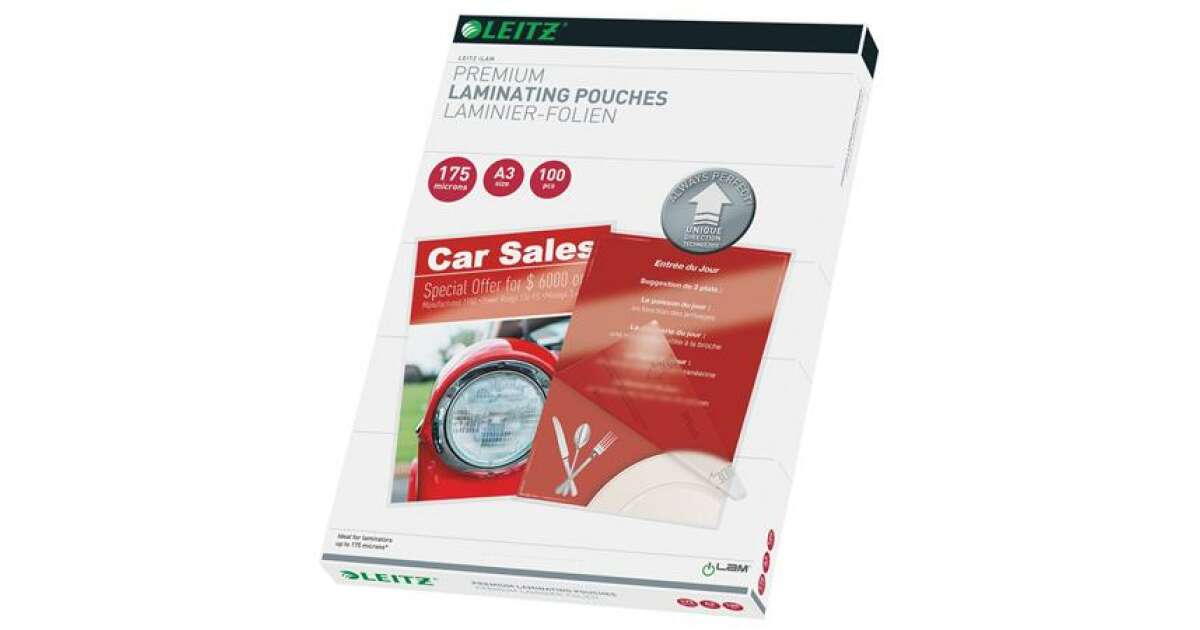 -Leitz STANDARD folia do laminowania na gorąco UDT, A3, 175 mikronów A3, 100szt/opak. opis