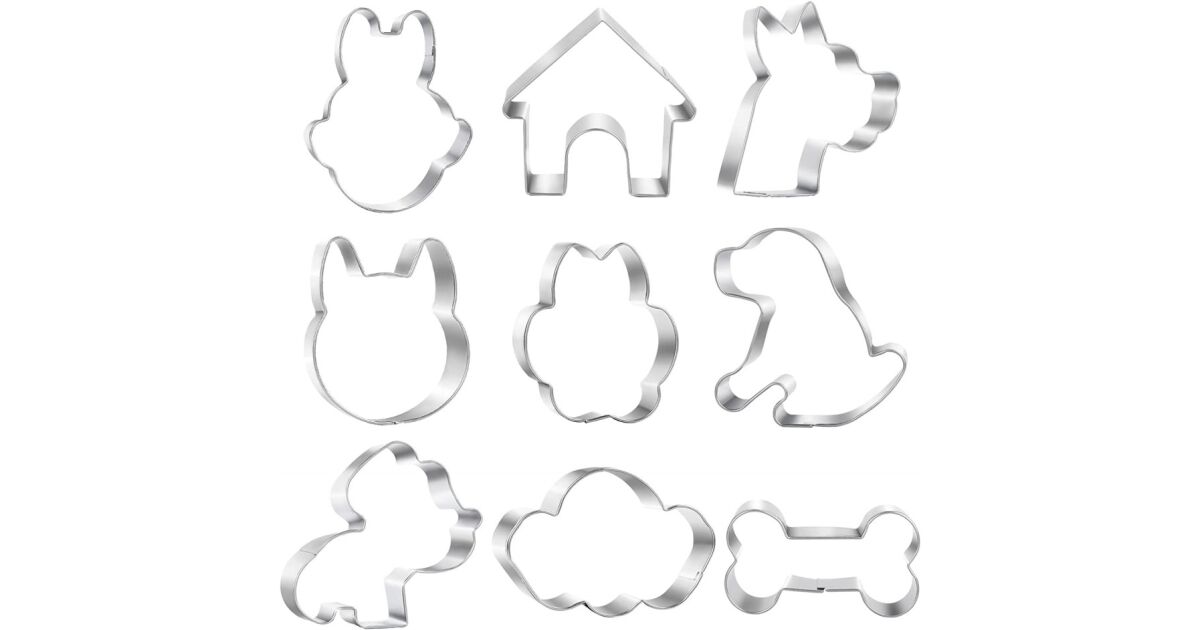 Ten zestaw 9 foremek do ciastek wykonanych ze stali nierdzewnej 304 jest idealny do tworzenia ciasteczek i innych smakołyków dla Twoich psów. Zestaw zawiera różnorodne urocze kształty: