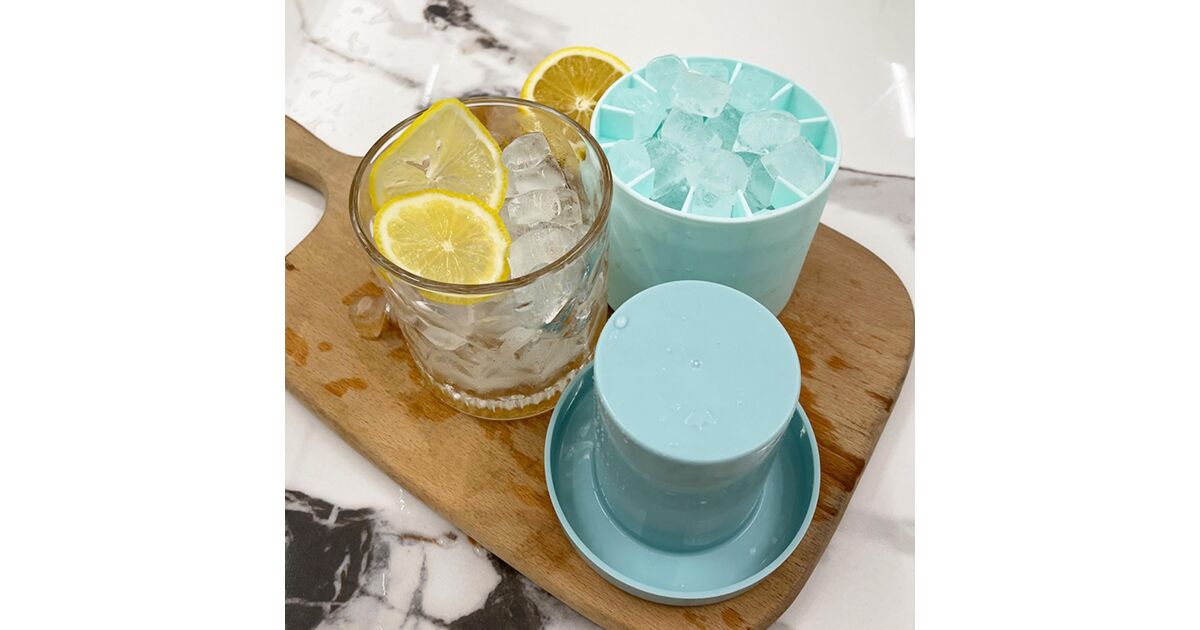 Silikonowa tacka na lód z pokrywką, Flippy, foremka do lodu do chłodzenia napojów, kształt koktajlu mlecznego, silikon bez BPA, kostki lodu, 9x8,5x8 cm, niebieski Opis Silikonowa foremka do lodu z cylindryczną pokrywką. Cechy: