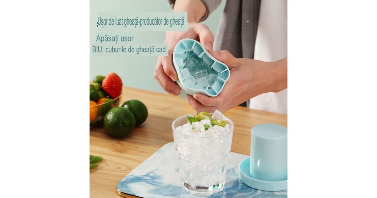 Silikonowa tacka na lód z pokrywką, Flippy, foremka do lodu do chłodzenia napojów, kształt koktajlu mlecznego, silikon bez BPA, kostki lodu, 9x8,5x8 cm, niebieski
