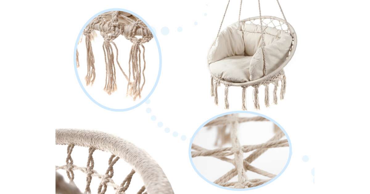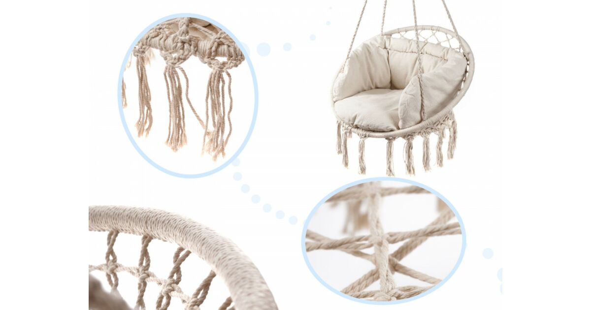 Beżowy fotel wiszący z liny z poduszkami - Relaks i styl w jednym 🪑