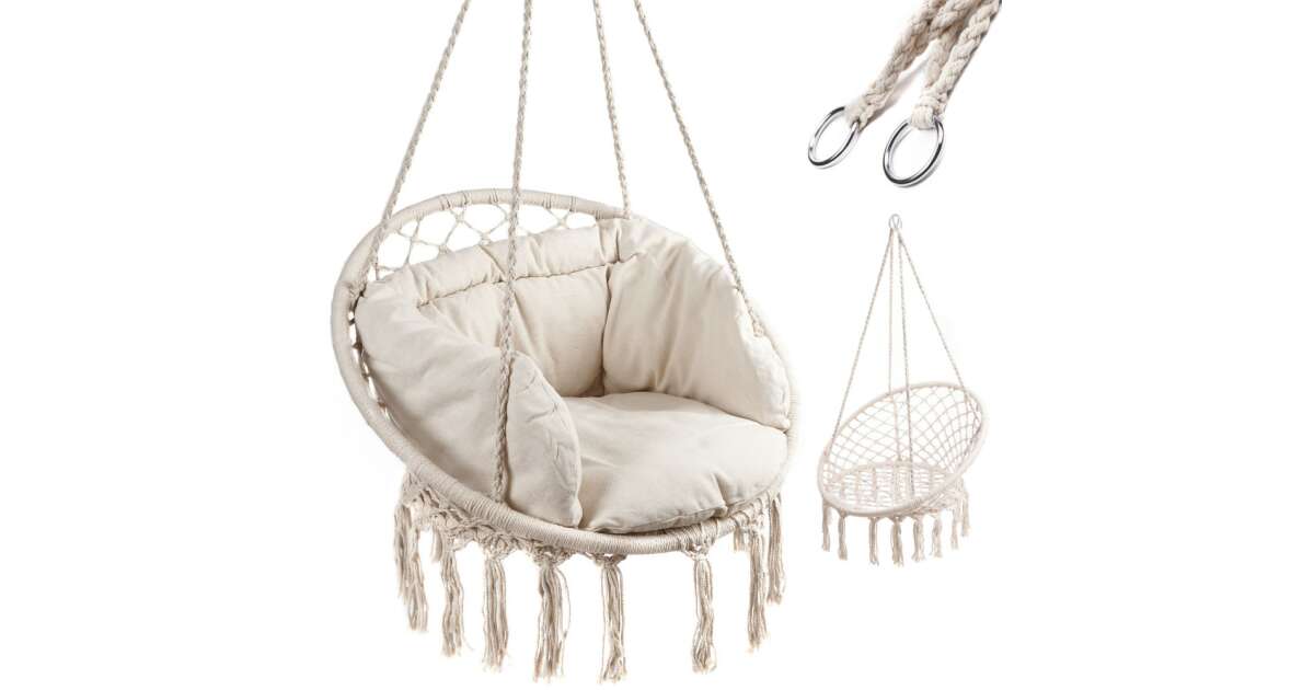 Stwórz strefę relaksu w swoim domu dzięki temu stylowemu i wygodnemu fotelowi wiszącemu! Idealny wybór do odpoczynku, czytania lub po prostu relaksu.