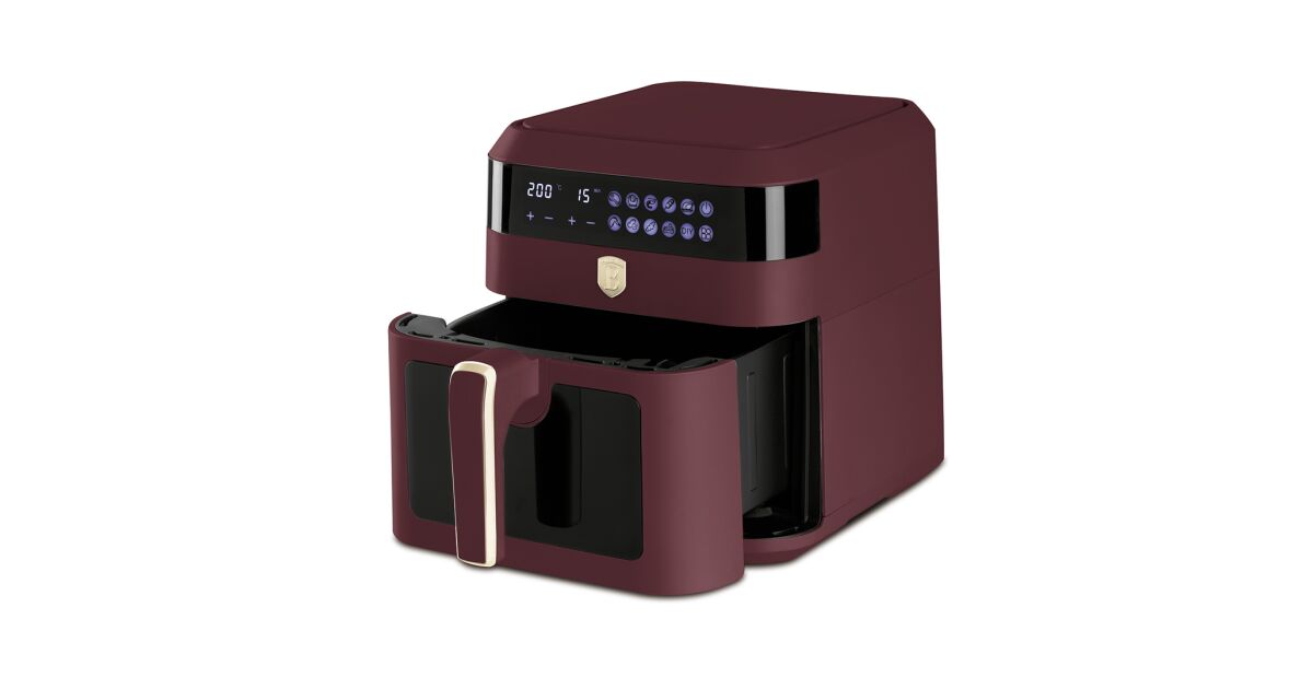 Stylowy wygląd Matowe bordowe wykończenie nadaje kuchni stylowy wygląd i tworzy doskonałą harmonię z resztą kolekcji Leonardo.AirFryer z przezroczystym okienkiem (6,3 L) jest częścią kolekcji Leonardo i nie tylko ułatwia zadania kuchenne, ale także zachwyca gości swoim stylowym wyglądem. Odkryj nowoczesne gotowanie z tym wysokiej jakości urządzeniem!