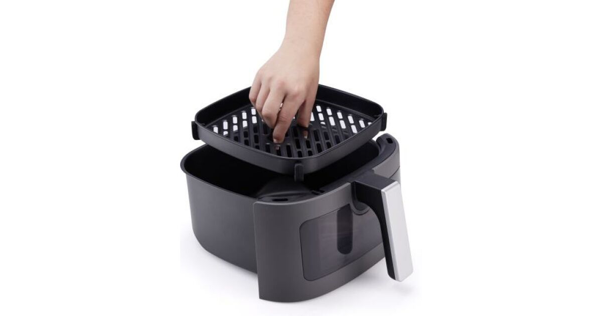 Gotowanie dostosowane do potrzeb Temperaturę można regulować ręcznie w zakresie od 40 do 200°C, aby uzyskać idealną chrupkość potraw. Timer można ustawić na maksymalnie 60 minut, a wygodne okienko umożliwia monitorowanie procesu gotowania przez cały czas. Ciesz się pysznym i chrupiącym jedzeniem.