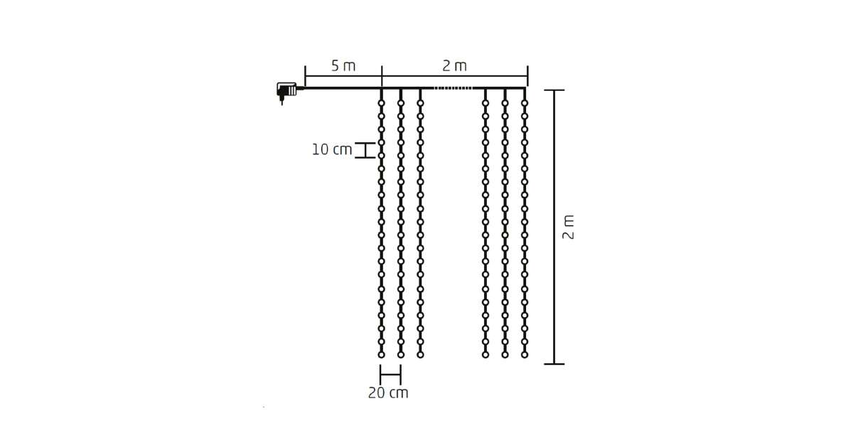 - 10 sznurów, w odstępie 20cm: Równe rozłożenie światełek ✨