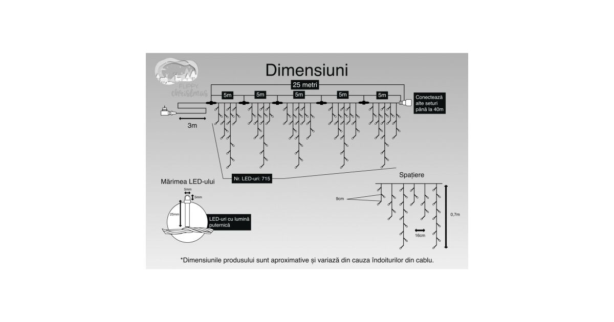 Stwórz magiczną, świąteczną atmosferę w swoim domu dzięki tym lampkom o długości 25 metrów z 715 diodami LED! Idealne do dekoracji świątecznych, zarówno w domu, ogrodzie, jak i wewnątrz pomieszczeń. Dzięki wszechstronnej konstrukcji z łatwością dopasowują się do każdej powierzchni.