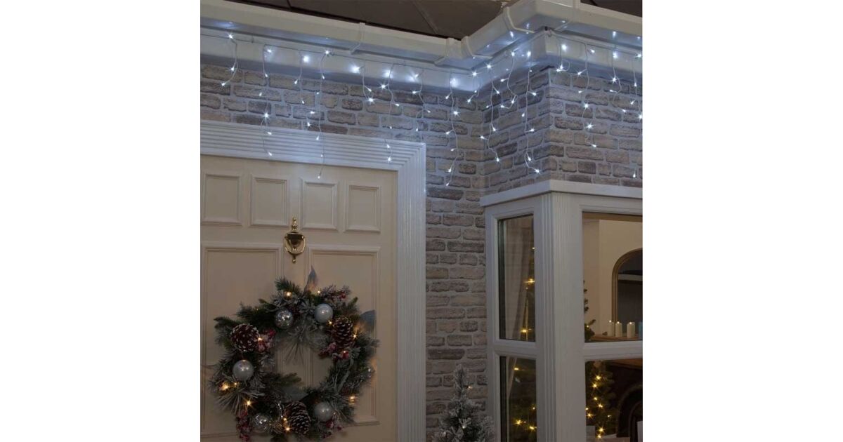 Oczaruj swój dom tymi pięknymi, 27-metrowymi świątecznymi lampkami sopelkami Flippy! 🎄 800 zimnych białych diod LED gwarantuje stworzenie olśniewającej, świątecznej atmosfery. Sopelkowy design zapewnia elegancki i nowoczesny wygląd, a czarny przewód dyskretnie wtapia się w otoczenie.