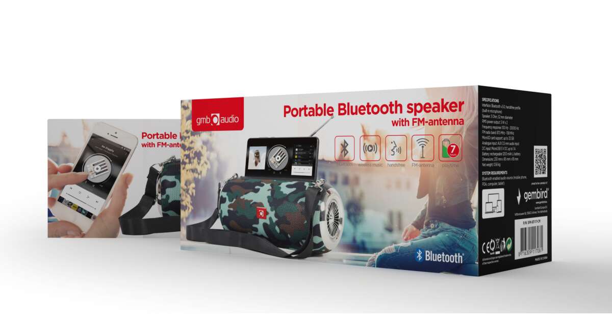 GEMBIRD SPK-BT-17-CM Portable Bluetooth speaker with antenna Camo