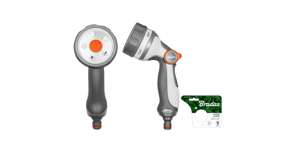 Ten 5-funkcyjny pistolet do podlewania to idealny wybór do podlewania ogrodu. Dzięki technologii Bradas Smooth Control z łatwością zregulujesz strumień wody, wybierając spośród 5 różnych ustawień.