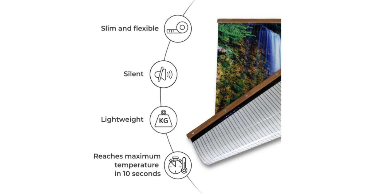Ten panel grzewczy to idealny wybór dla tych, którzy chcą ogrzewać swój dom efektywnie i stylowo. Dekoracyjny wzór ożywia pomieszczenie, a panel cicho i energooszczędnie zapewnia przyjemne ciepło. Dzięki łatwemu zwijaniu można go łatwo przechowywać, gdy nie jest potrzebny.