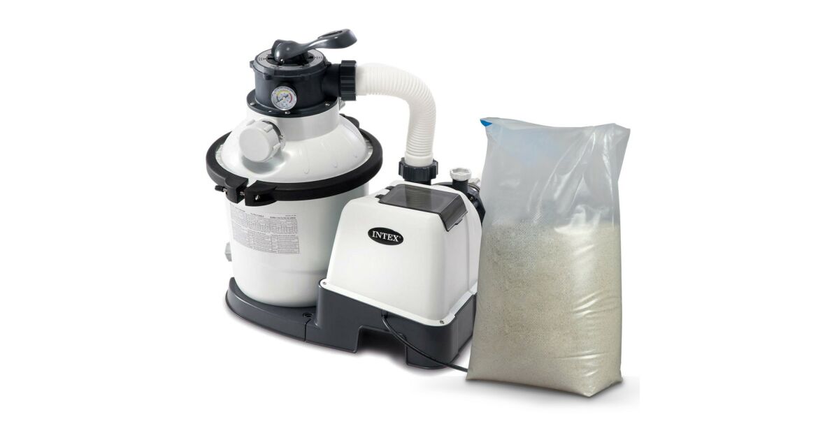 Pompa piaskowa Intex może wypompować 4500 litrów piasku na godzinę i może przechowywać 12 kg piasku.
