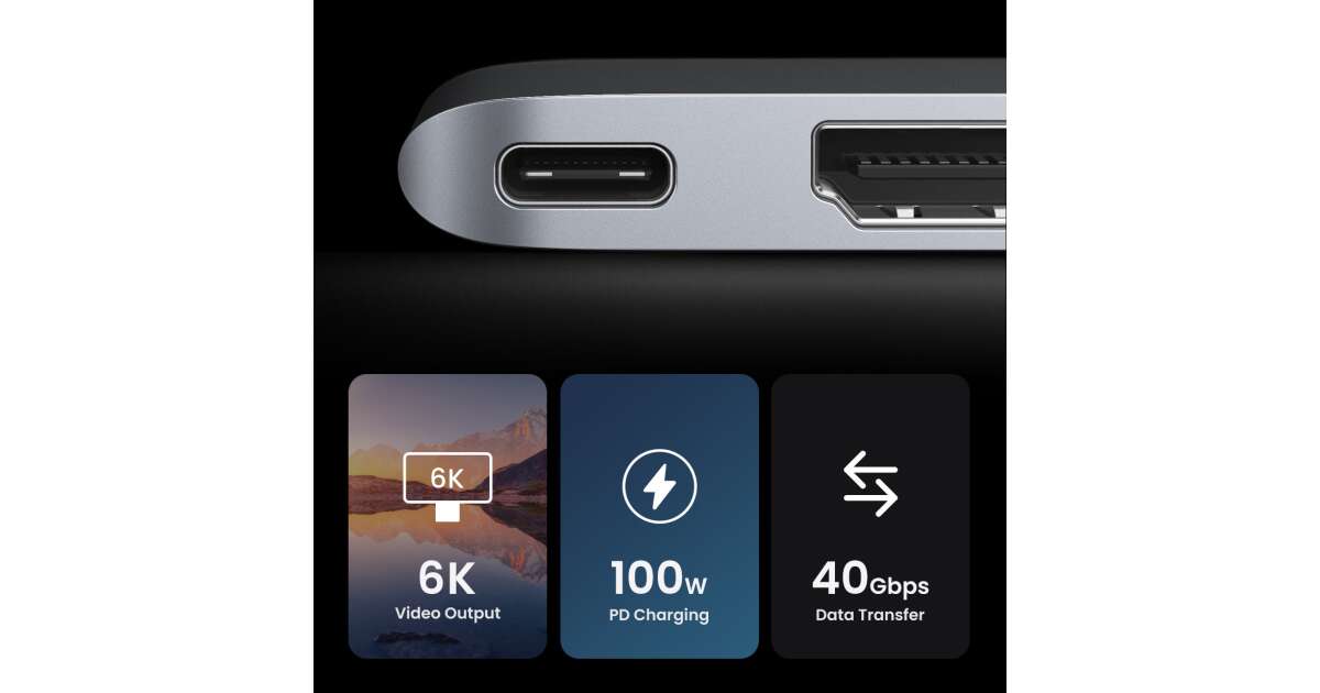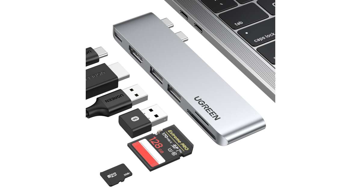 Adaptér 6 v 1 UGREEN CM380 USB-C Hub pre MacBook Air / Pro (sivá)
