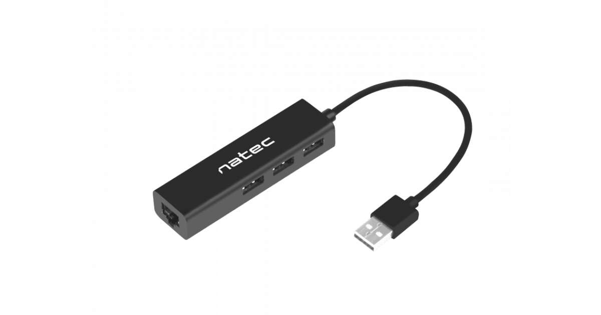 Hub USB 2.0 Natec DRAGONFLY: 3 porty USB + 1 złącze RJ45 LAN 💻
