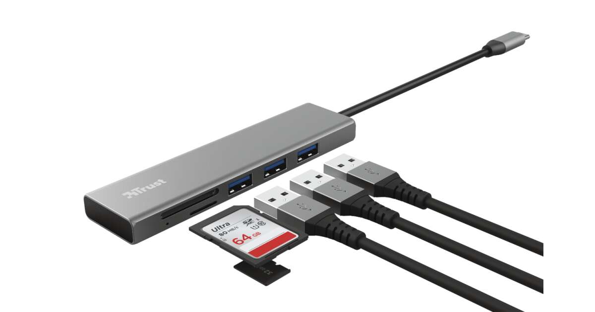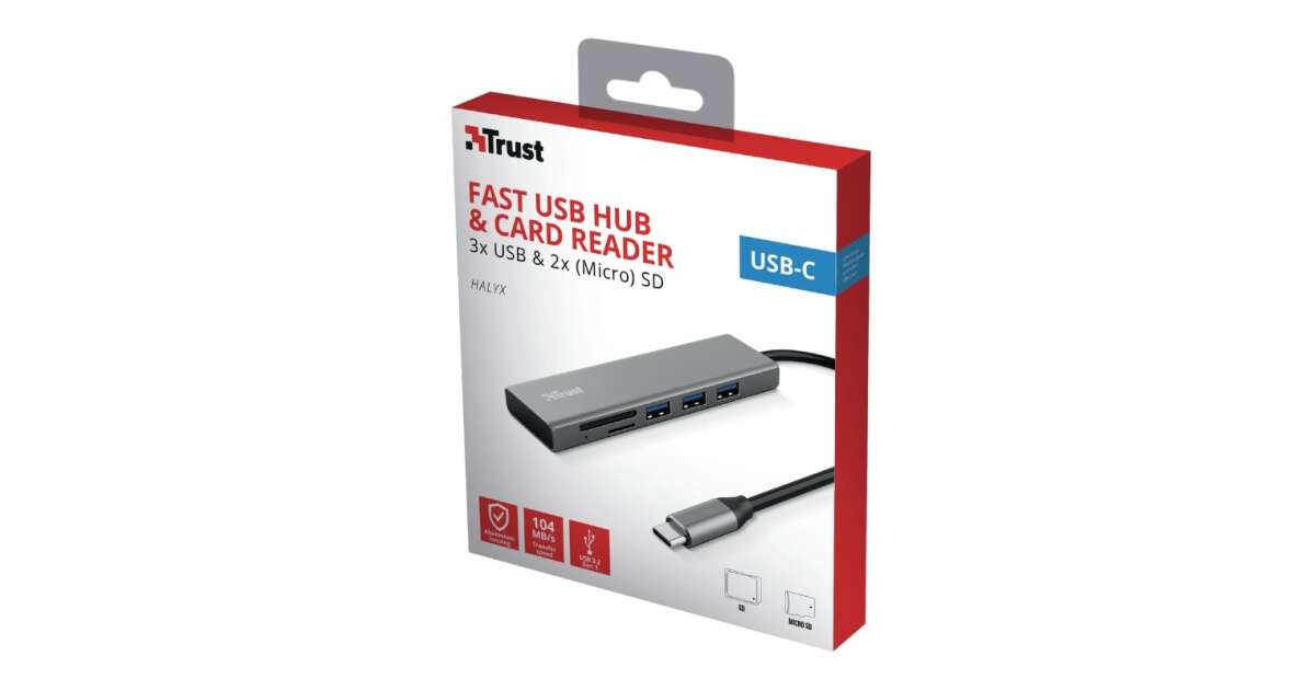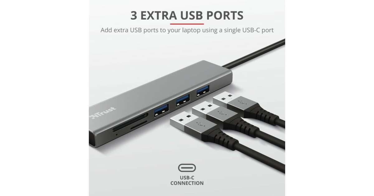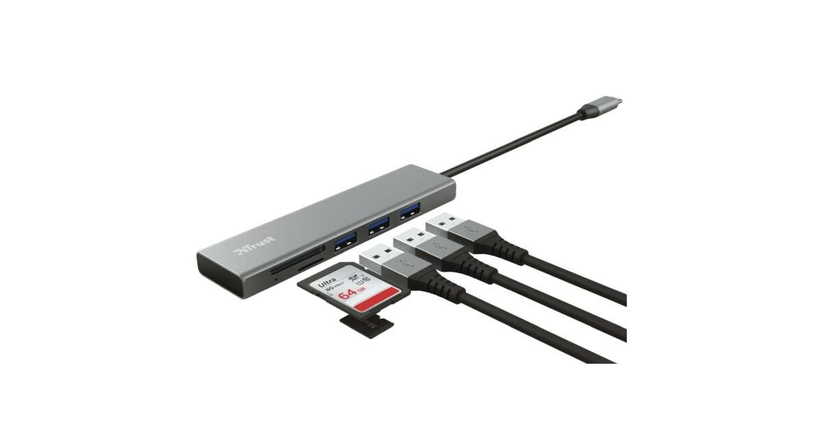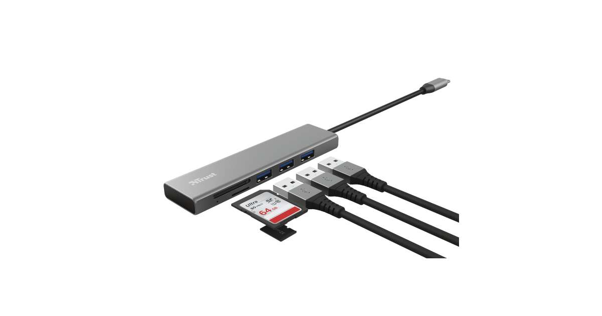 Ten kompaktowy i elegancki hub Trust Halyx USB-C to idealne uzupełnienie Twojego laptopa lub tabletu. Posiada trzy porty USB 3.0 oraz czytnik kart SD i microSD, dzięki czemu możesz podłączyć jednocześnie wiele urządzeń i szybko przesłać swoje dane.