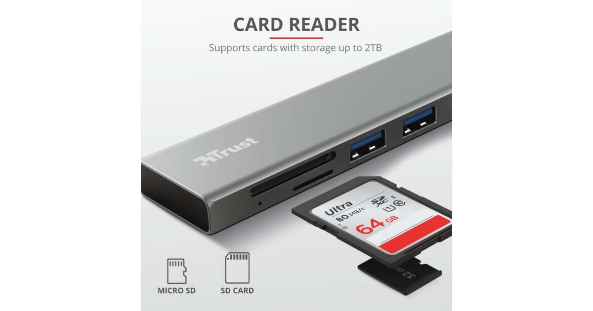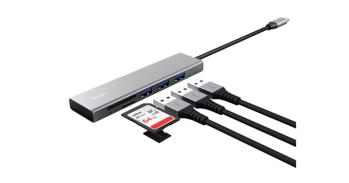 Hub i czytnik kart Trust Halyx USB-C: Szybki transfer danych i podłączanie wielu urządzeń ⚡️