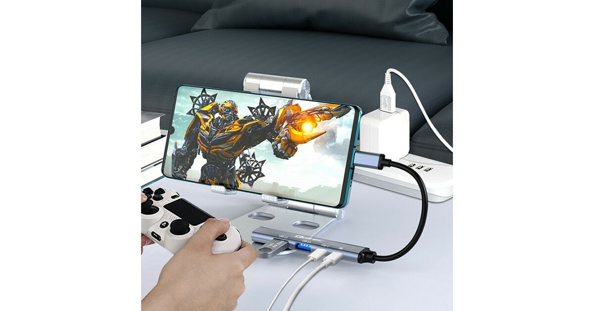 Podłącz wiele urządzeń jednocześnie i ciesz szybkim i niezawodnym przesyłaniem plików. Nasz hub pozwoli Ci wpiąć do komputera dodatkowy sprzęt i akcesoria takie jak : myszka, klawiatura, drukarka, pendrive, dodatkowy monitor, projektor, słuchawki, głośniki i wiele innych. Z naszym urządzeniem, nie musisz wybierać, które urządzenie odłączyć, aby podpiąć kolejne. Hub wyposażony w port USB 3.0 i 2 porty USB 2.0 oraz 2 porty USB-C w tym jeden obsługujący standard ładowania Power Delivery 3.0.
