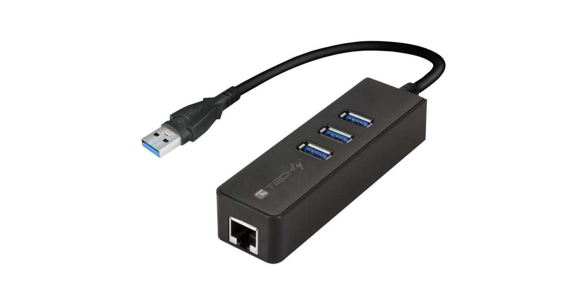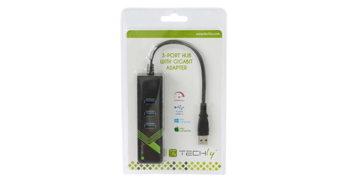 Hub USB 3.0 Techly z 3 portami + Gigabit Ethernet: Więcej portów USB i szybki internet w jednym urządzeniu! 🚀