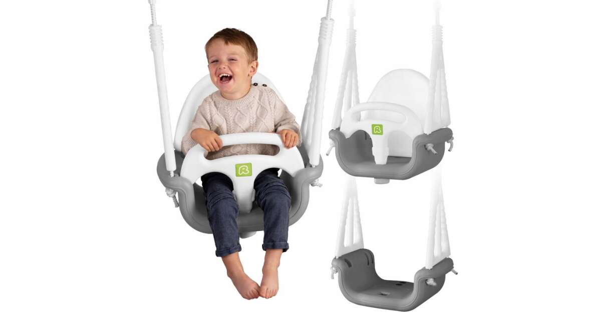 Huśtawka dla niemowląt Ricokids 3w1 z zabezpieczeniem przed upadkiem i oparciem, od 6 miesięcy, 30 kg - szara, biała