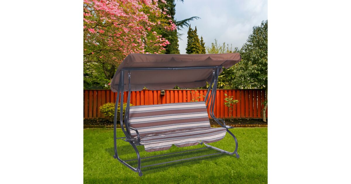 Ciesz się letnimi dniami na tej wygodnej huśtawce, idealnej do ogrodu lub na taras. Stabilna rama i miękka wyściółka gwarantują maksymalny komfort, a daszek chroni przed promieniami słonecznymi.