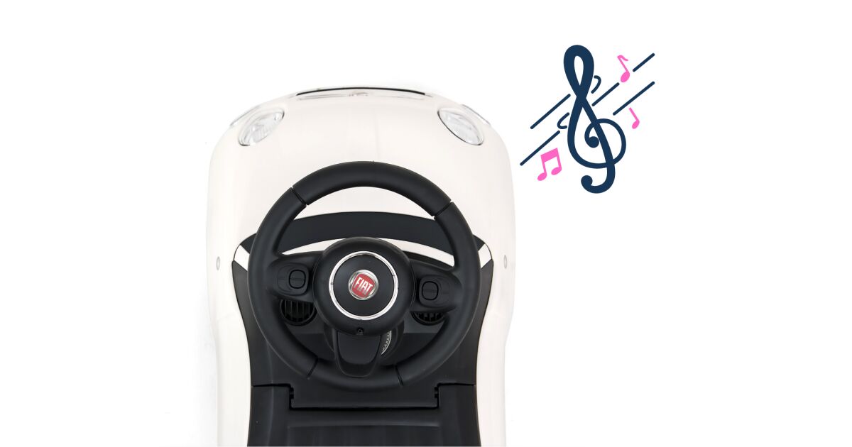 trójramienna kierownica z logiem fiata, wyposażona w panel muzyczny: klakson oraz wesołe melodyjki