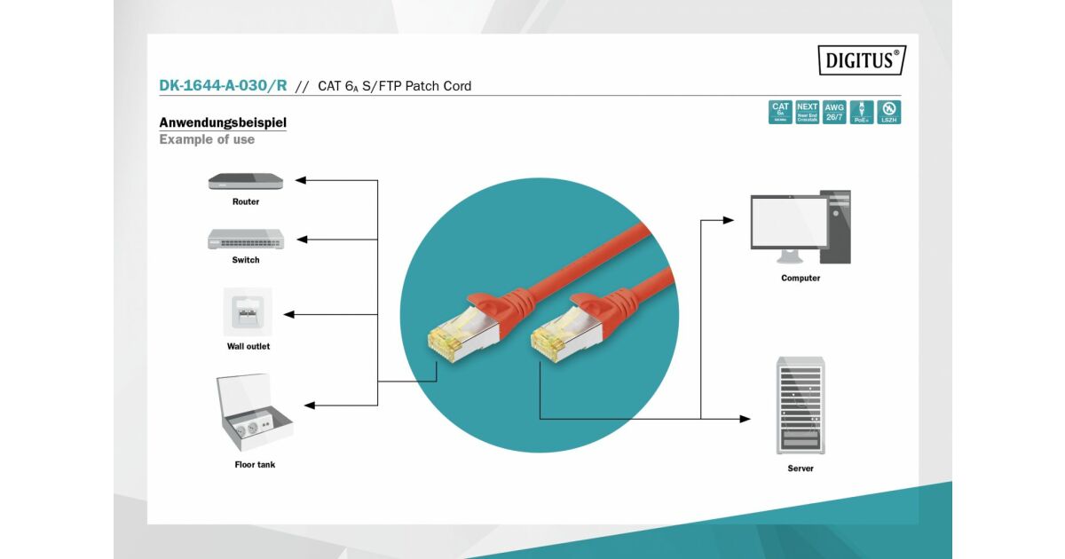 Digitus Assmann / Digitus CAT 6A S-FTP PATCH C. LSOH. CU cable structure: 4 x 2 AWG 26/7, twisted pair, color: red, length: 3 m, occupancy: 1: 1, sheath: LSOH (DK-1644- A-030 / R) recenzje