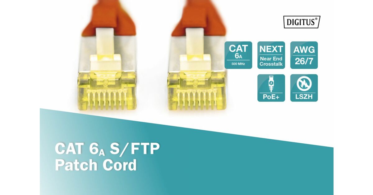 Digitus Kabel krosowy CAT 6A S/FTP. Długość kabla: 3 m, Standard kabla: Cat6a, Izolacja kabla: S/FTP (S-STP), Złączka 1: RJ-45, Złączka 2: RJ-45, Kolor produktu: Czerwony