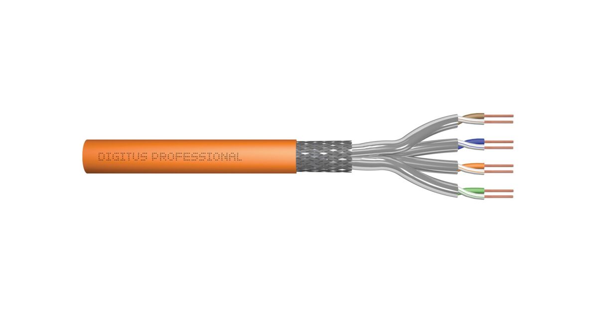 Kabel instalacyjny DIGITUS kat.7, S/FTP, Dca, AWG 23/1, LSOH, 100m, pomarańczowy, folia o numerze katalogowym DK-1743-VH-1 w kategorii Kable do automatyki i transmisji danych, Kable sterownicze i sygnalizacyjne. Produkt wyprodukowany przez markę DIGITUS PROFESSIONAL.
