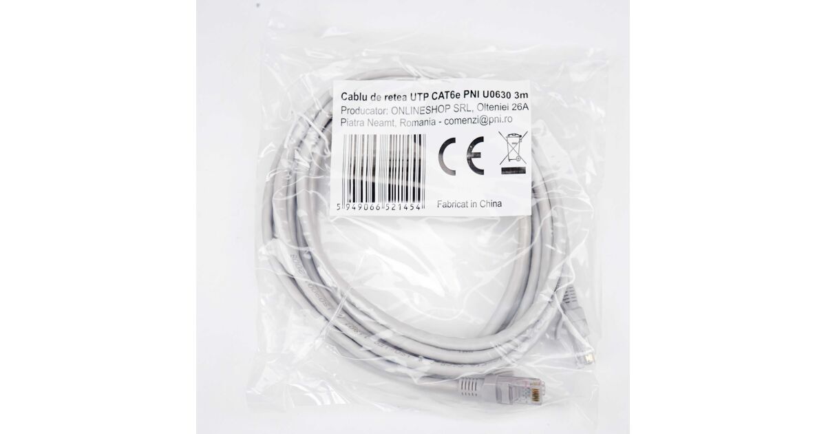 Kabel Patch PNI U0630 Cat6E UTP - 3 metry, szary - Stabilne połączenie z Twoją siecią! 💻