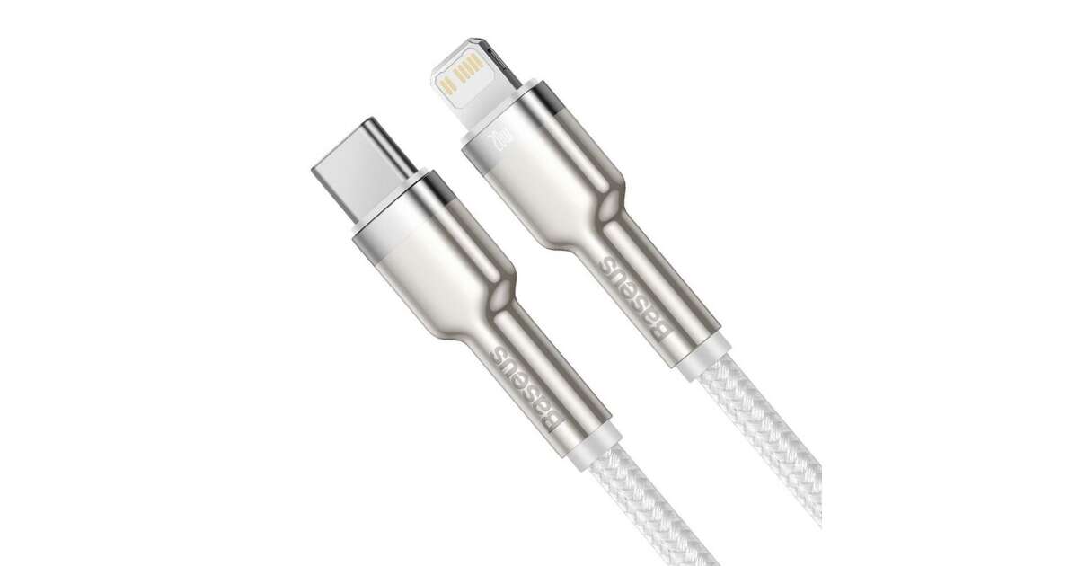 Kabel ładujący USB-C do Lightning Baseus Cafule, PD, 20W - Biały, 1m opis