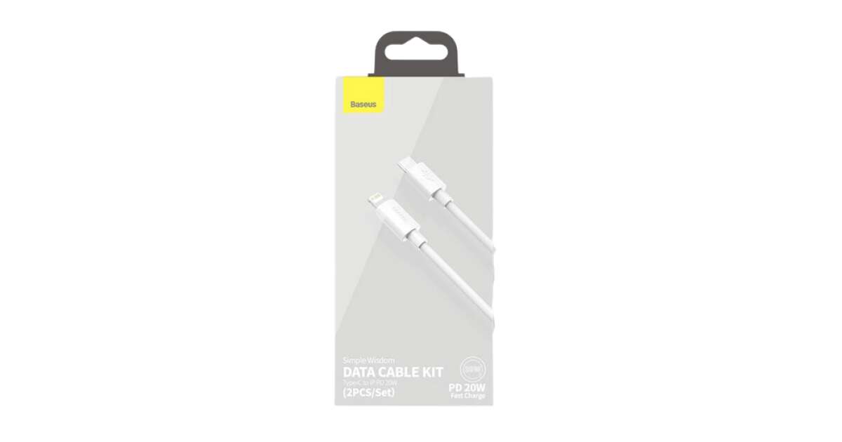 Zestaw kabli do transmisji danych Baseus Simple Wisdom, USB-C na Lightning, PD, 20W, 2szt., 1,5m, biały