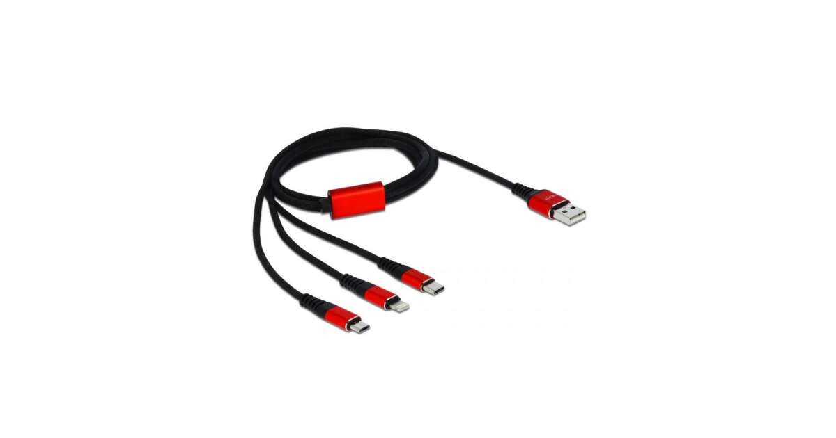 DeLock Kabel ładujący USB 3 w 1 do Lightning / microUSB / USB Type-C 1m Czarny 85892 opis