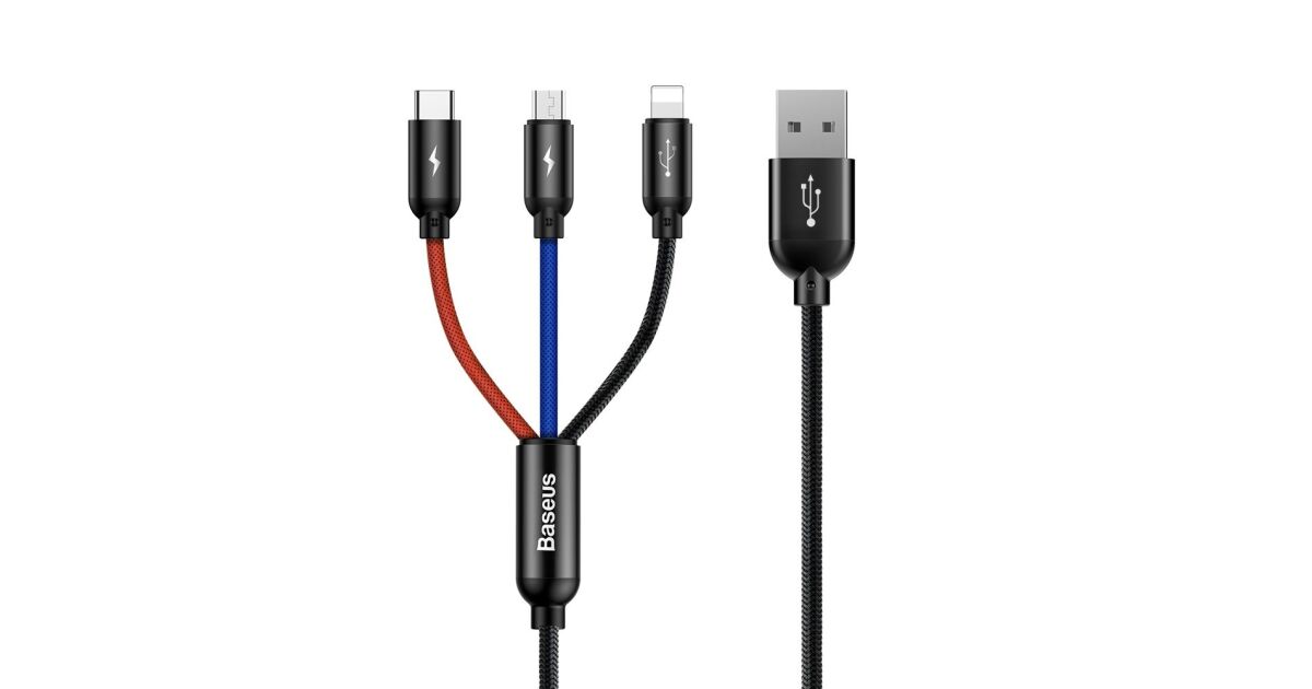 Kabel Baseus 3w1: Ładuj trzy urządzenia jednocześnie! ⚡