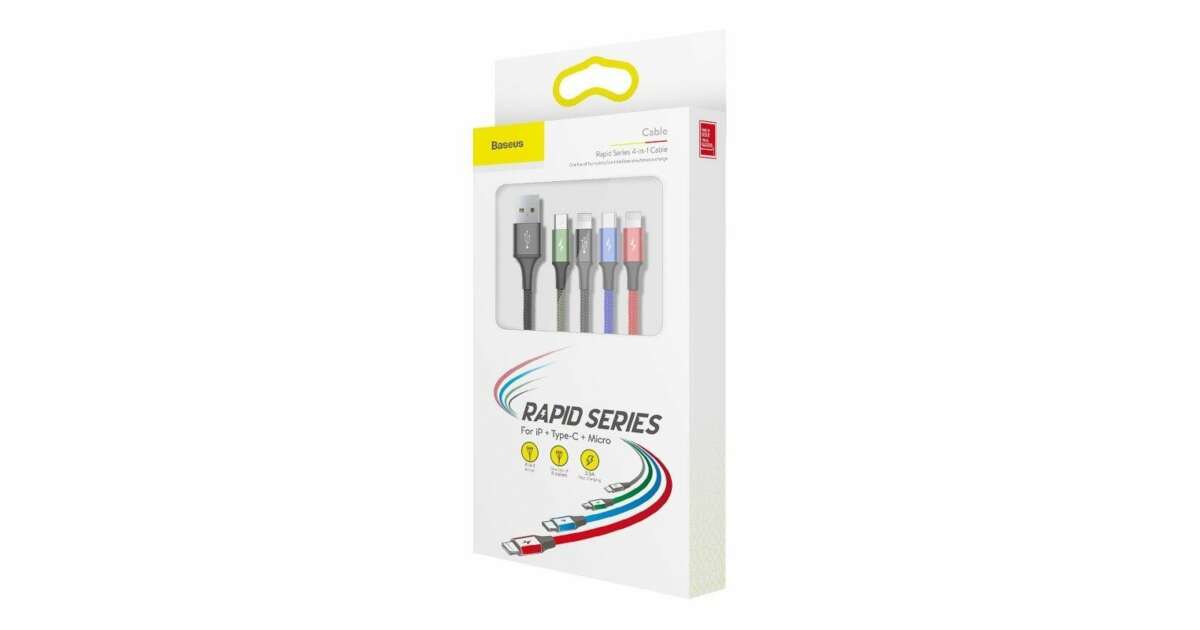 Kabel Baseus 4w1 to idealny wybór, jeśli szukasz praktycznego i niezawodnego kabla ładującego!