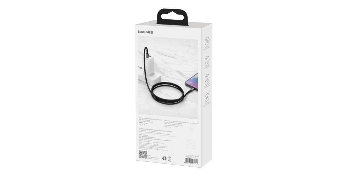 Kabel Baseus Baseus CATLWJ-A01 Lightning - USB-C PD 20W 480Mb/s 2m - czarny opis