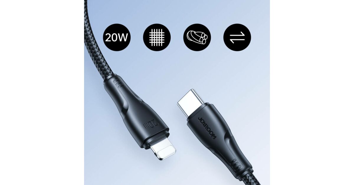 Kabel szybkiego ładowania i przesyłania danych Joyroom Surpass Series, USB-C na Lightning, 20 W, 0,25 m, czarny (S-CL020A11) opis