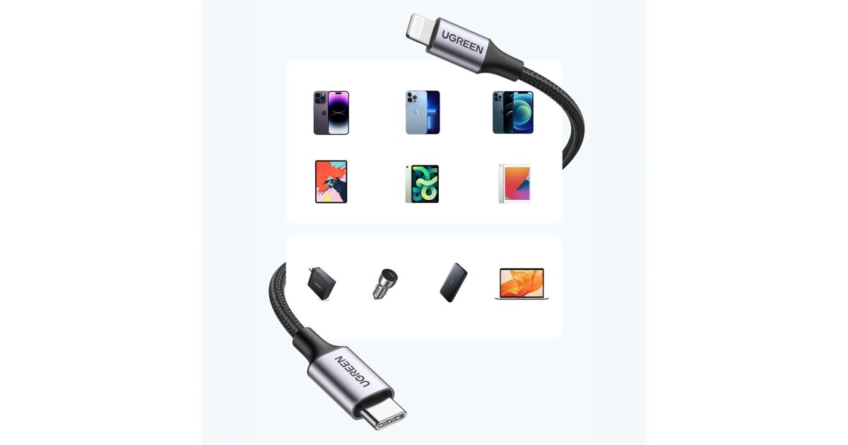 🚀 Błyskawiczne ładowanie: Ten kabel UGREEN obsługuje szybkie ładowanie 20W PD, dzięki czemu naładujesz baterię swojego iPhone'a lub iPada w mgnieniu oka. Już po 30 minutach możesz uzyskać nawet 60% naładowania!