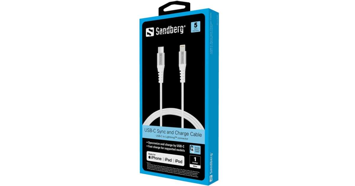 Kabel Sandberg USB-C - Lightning do ładowania i transmisji danych: Zapewnia szybkie ładowanie i przesyłanie danych ⚡️