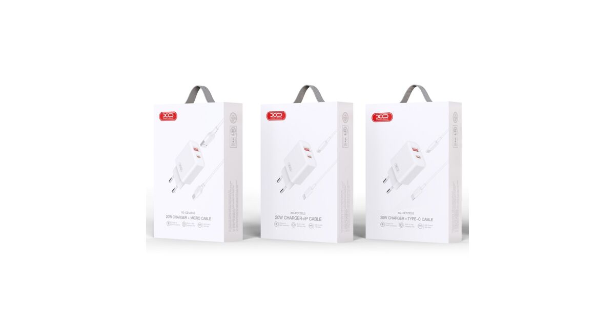 XO ładowarka sieciowa CE12 PD QC 3.0 20W 1x USB 1x USB-C biała + kabel USB-C - Lightning