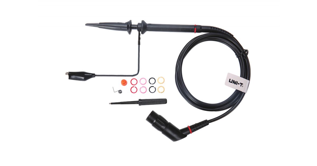 Sonda oscyloskopowa 25 MHz Uni-T UT-H01 (wtyk BNC kątowy)Sonda oscyloskopowa Uni-T UT-H01 to precyzyjne narzędzie pomiarowe, które doskonale sprawdza się w diagnostyce sygnałów w oscyloskopach. Jej solidna konstrukcja oraz zaawansowane parametry sprawiają ją idealnym wyborem dla profesjonalistów zajmujących się analizą i testowaniem sygnałów elektronicznych. Precyzyjne pomiary i wszechstronnośćSonda UT-H01 oferuje szerokość pasma 25 MHz, co zapewnia dokładne odwzorowanie sygnałów w tym zakresie. Dzięki dwóm współczynnikom tłumienia 1:1 i 1:10, możliwe jest dostosowanie zakresu pomiaru do różnych potrzeb aplikacyjnych. Impedancja wejściowa wynosi 1 M? przy tłumieniu 1:1 i 10 M? przy tłumieniu 1:10, co zapewnia kompatybilność z szerokim zakresem oscyloskopów. Wysoka odporność na napięcieSonda jest przystosowana do pracy z maksymalnym napięciem 300 Vpp przy tłumieniu 1:1 oraz 600 Vpp przy tłumieniu 1:10. Taki zakres napięć pozwala na bezpieczne pomiary w różnych środowiskach testowych i zapewnia dużą elastyczność w analizie sygnałów. Praktyczna konstrukcjaUni-T UT-H01 wyposażona jest w wtyk BNC kątowy, co ułatwia podłączanie w miejscach o ograniczonej przestrzeni i pozwala na wygodniejsze pozycjonowanie sondy. Jest kompatybilna z oscyloskopami z serii UTD1025CL oraz UTD1025C, co sprawia ją idealnym akcesorium do tych modeli.