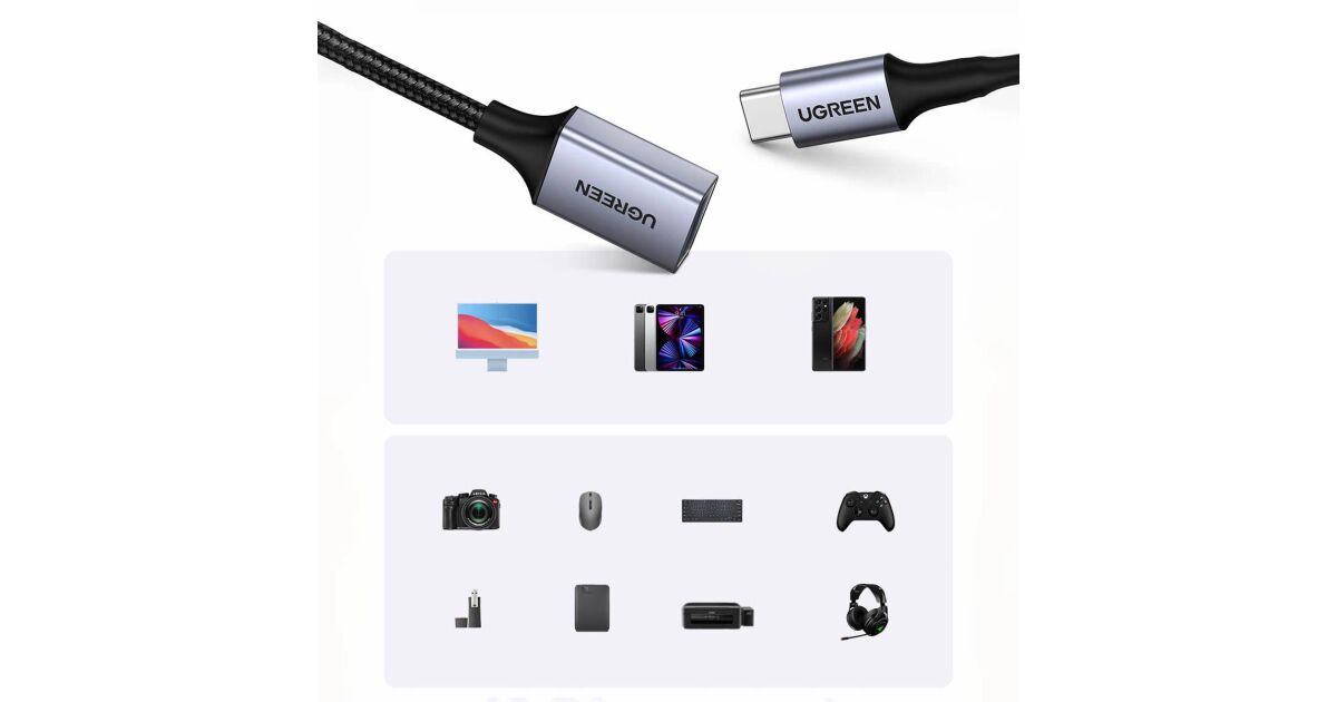 Adapter USB Ugreen US378 USB-C - USB Szary (UGR1090GRY) opis