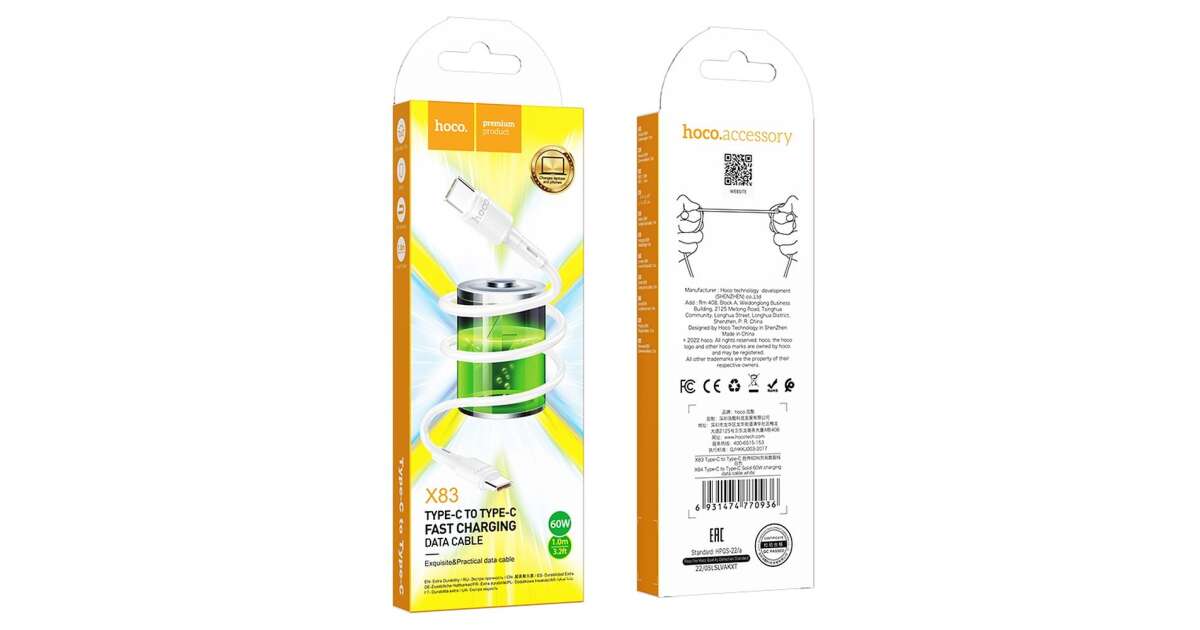 HOCO kabel Typ C do Typ C Power Delivery PD60W 3A Victory X83 1m biały