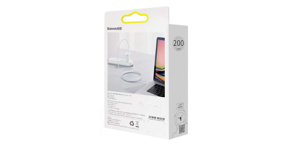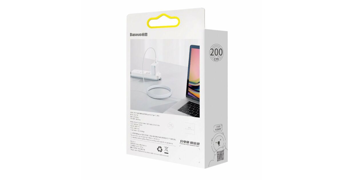 Kabel Baseus Baseus CATYS-C02 USB-C - kabel USB-C PD QC FCP 100W 5A 2m - biały opis