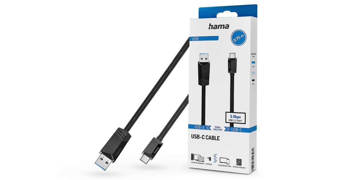 Kabel do ładowania i transmisji danych HAMA USB-A - Typ-C z przewodem 0,75 m - Kabel HAMA USB-A - USB-C - czarny opis