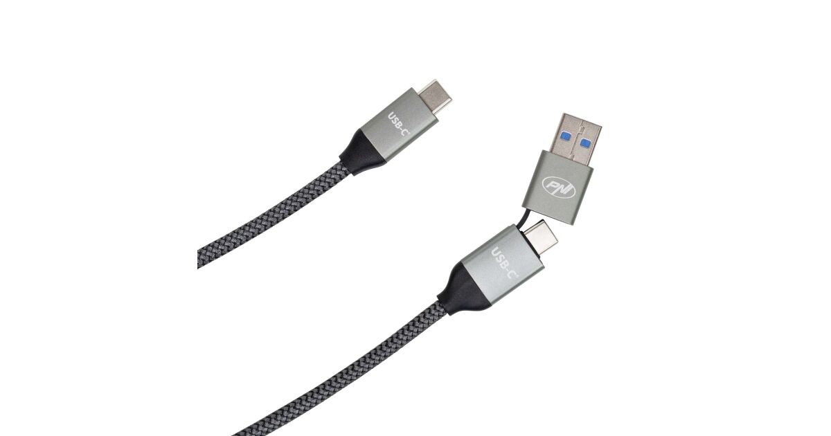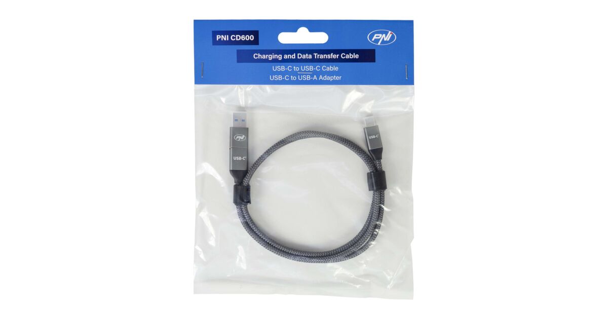 Kabel do transmisji danych i ładowania PNI CD600 USB typu C do typu C 60 W + adapter USB typu C do USB-A, długość 1 m
