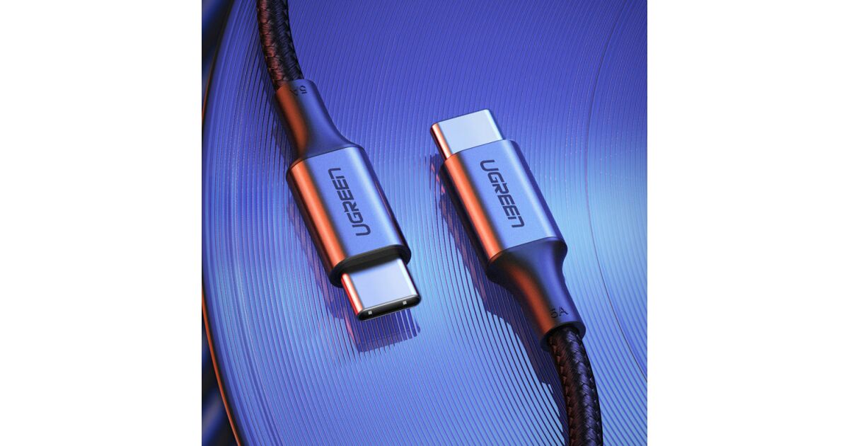 Ugreen 90120. Długość kabla: 3 m. Złączka 1: USB C, Złączka 2: USB C, Wersja USB: USB 2.0, Maksymalna szybkość przesyłania danych: 480 Gbit/s, Kolor produktu: Czarny