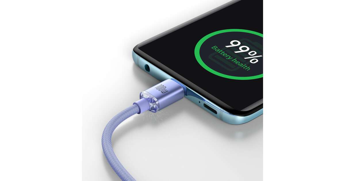 Kabel Baseus Baseus Crystal Shine USB-C do USB-C, 100 W, 2 m (fioletowy) opis