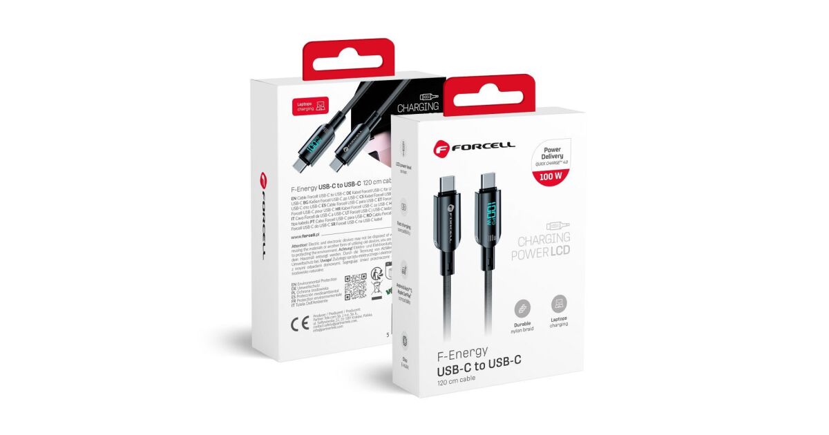 Kabel USB C do USB C Forcell F-Energy QC4.0 PD 5A 100W Digital 1,2 m C277 czarny opis